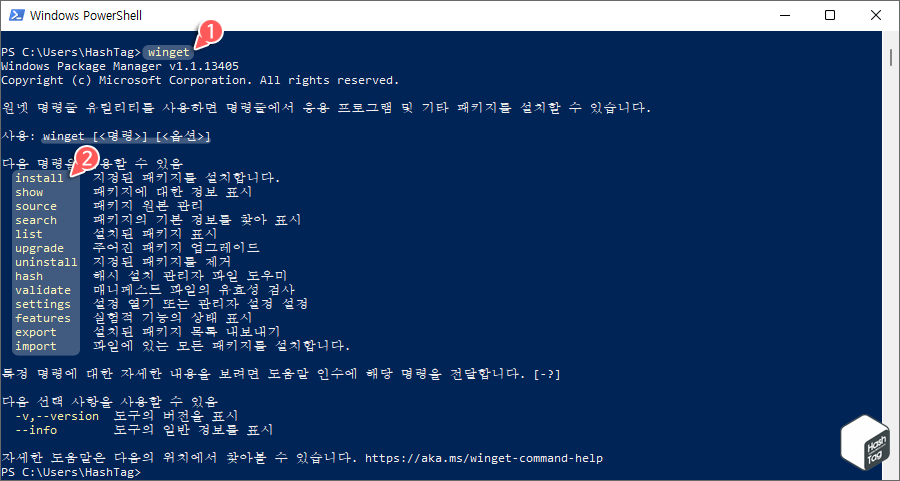 설치가 완료되면 컴퓨터를 다시 시작하여 Windows PowerShell 또는 명령 프롬프트 앱 실행 후 WINGET 도구를 사용할 수 있습니다.