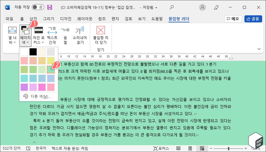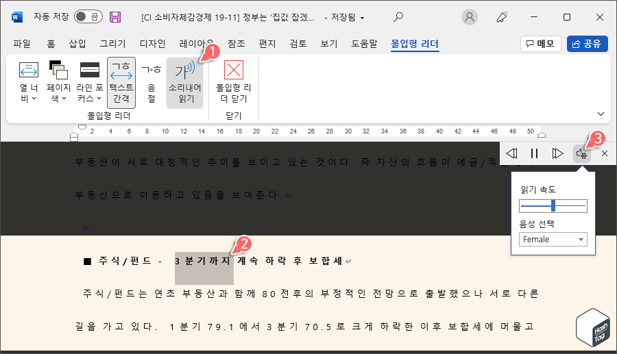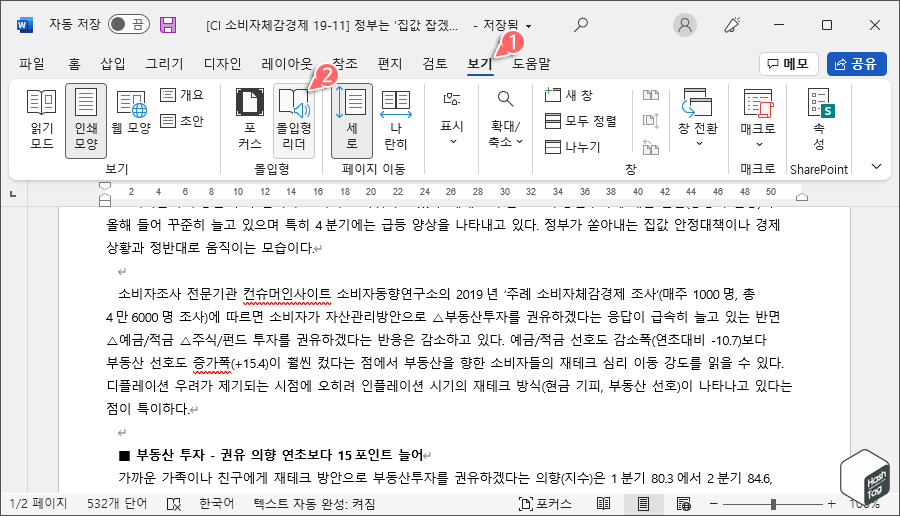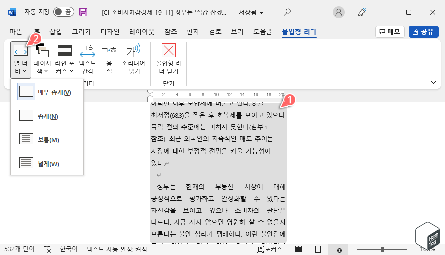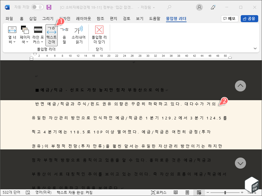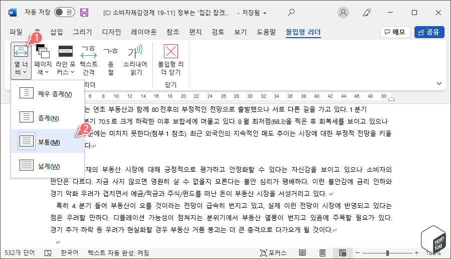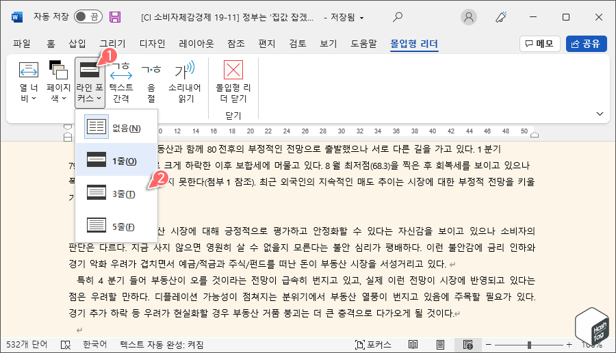 HowTo - Word 문서를 읽을 때 집중할 수 있는 '몰입형 리더' 활용하기