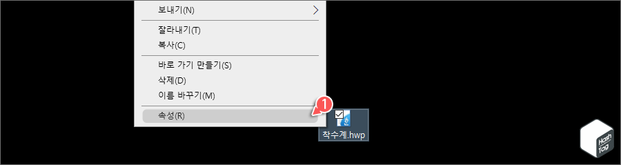 또는 한글 문서 HWP 파일이 '읽기 전용' 특성으로 설정된 경우도 있습니다. 파일을 선택하고 마우스 오른쪽 버튼을 클릭한 다음 [속성(R)]을 선택합니다.