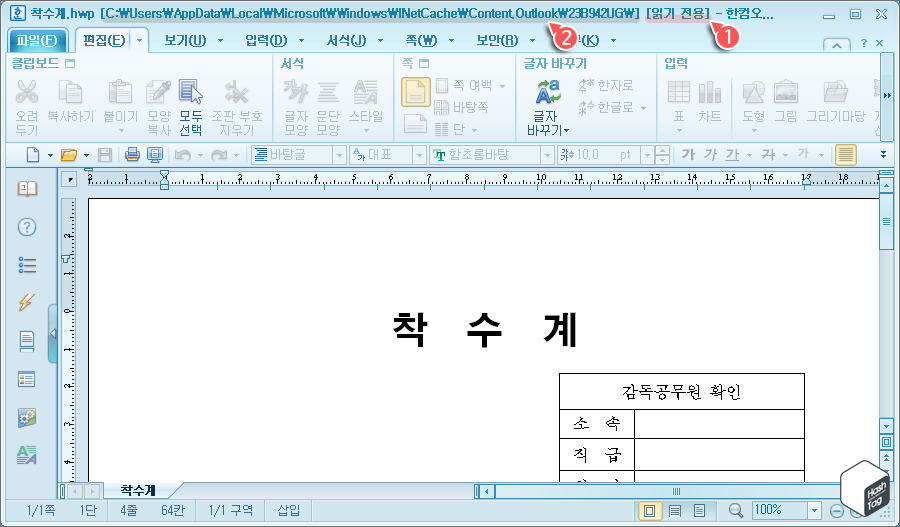 HowTo - 한글 문서가 읽기 전용일 때 해제하고 편집하는 방법