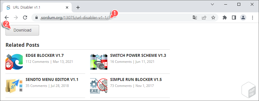 개발사 공식 홈페이지 다운로드 페이지에서 URL Disabler 도구를 다운로드합니다.