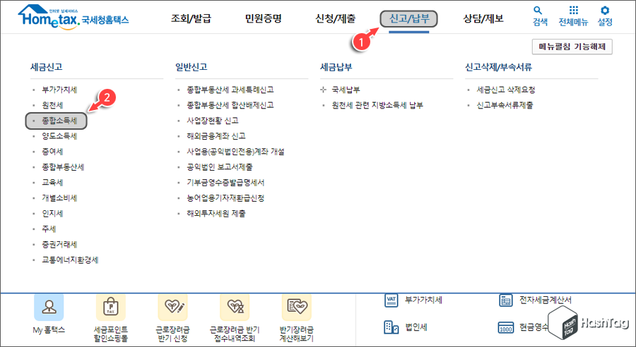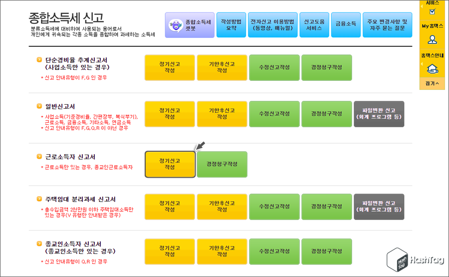 만약 국세청 홈택스에서 진행하고 싶다면 '경정청구'가 아닌 '정기신고'를 진행해야 합니다.
