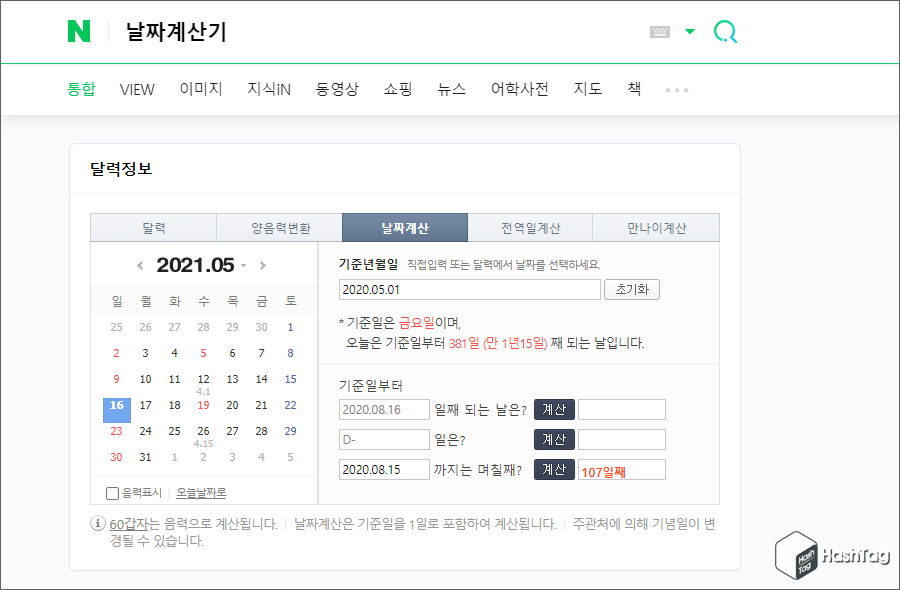 참고로 임대기간별로 보증금 변동이 있을 때 해당 구간에 대한 정확한 일 수를 구할 때, 직접 세어보는 것보다 네이버 날짜 계산기 등의 도움을 받으면 보다 빠르고 정확하게 확인하실 수 있습니다.