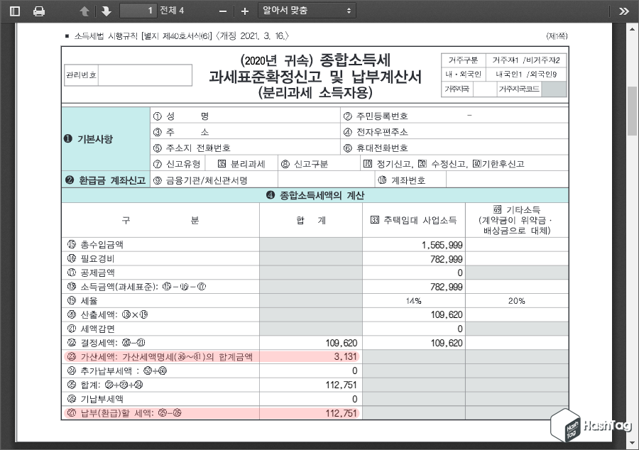 STEP 03. 분리과세 소득 결정세액 계산서