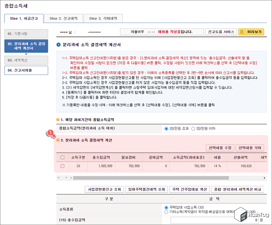 종합소득세 주택임대 소득자(V) 유형 전자신고 or 수정 신고 방법