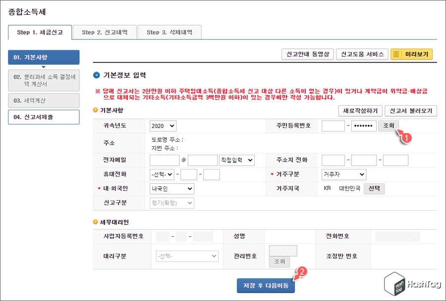 STEP 01. 종합소득세 분리과세 전자신고