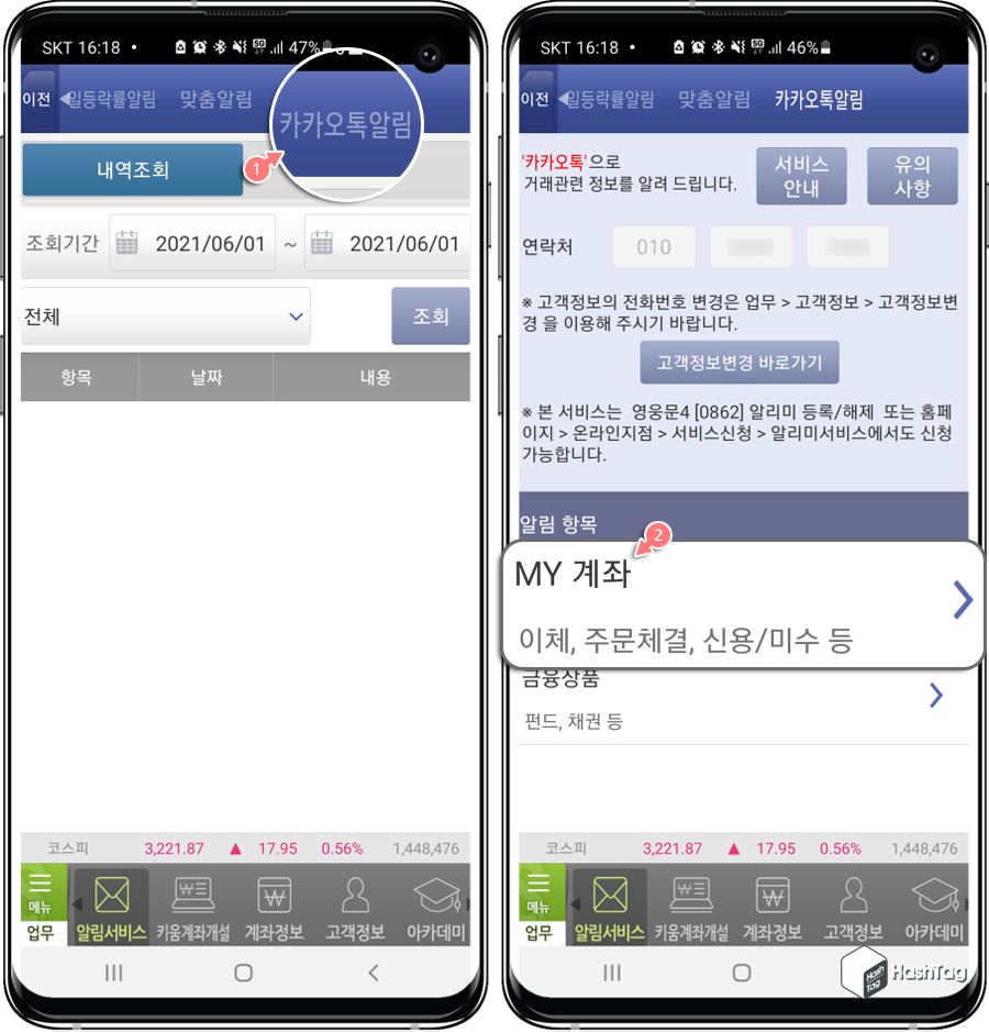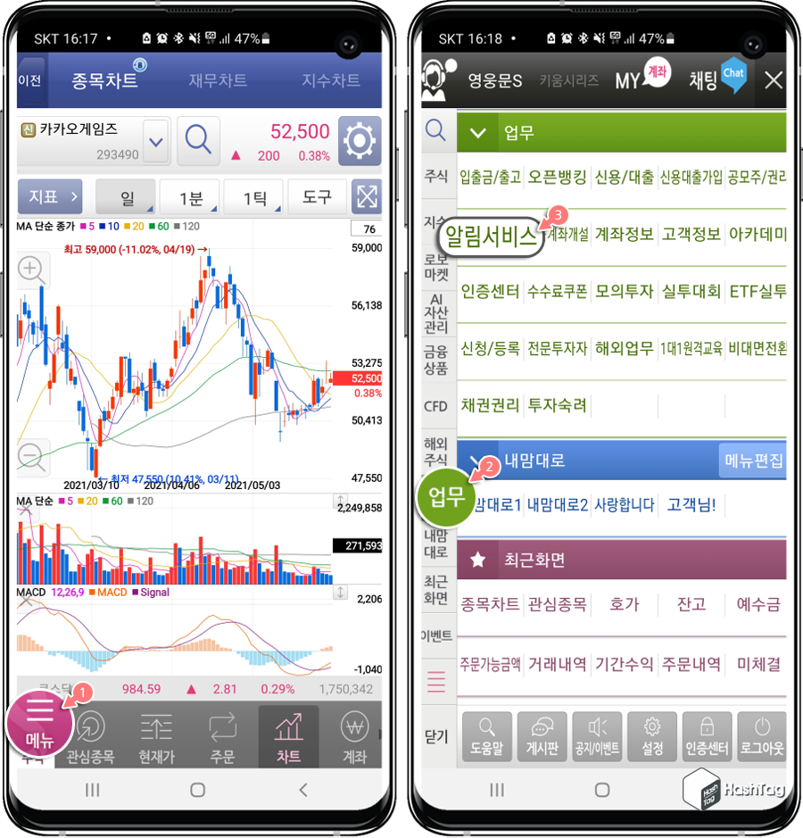 키움증권 영웅문S 카카오톡알림 설정 방법